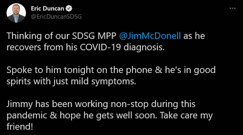 SDSG – Local MPP Jim McDonell has tested positive for COVID-19.