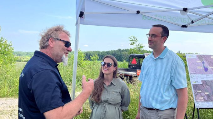Ontario Environment, Conservation and Parks Minister Andrea Khanjin (center) and MPP Nolan Quinn (right) at a wetlands restoration announcement at Jamink Farms on Willy Allen Road on Tuesday, June 18, 2024. (Andrea Khanjin/X via Newswatch Group)