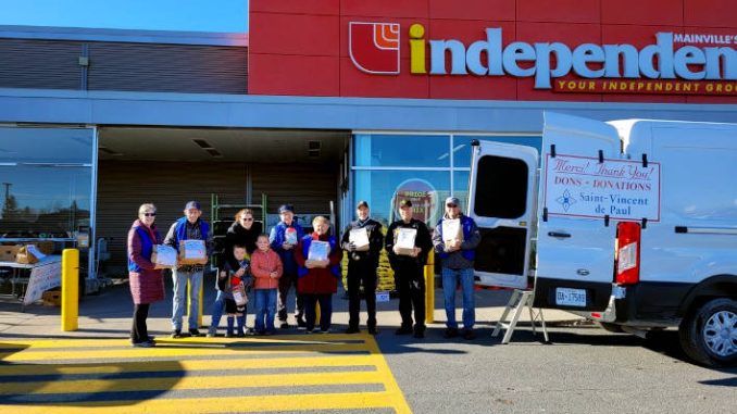 A separate collection in Alexandria at Mainville’s Your Independent Grocer with help from the Saint Vincent de Paul Society collected 138 bags of non-perishable food items at $1,738 in cash.