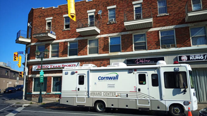 The Cornwall Command Center is set up at the scene of an apartment fire on Montreal Road on Friday, Sept. 5, 2025. (Newswatch Group/Bill Kingston)