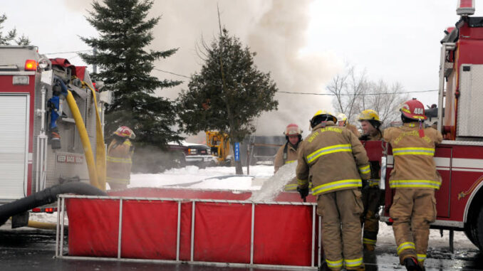 In this January 2015, file photo, South Glengarry firefighters fill a portable tank with water at the scene of a garage fire near Green Valley. (Newswatch Group/Bill Kingston, File)