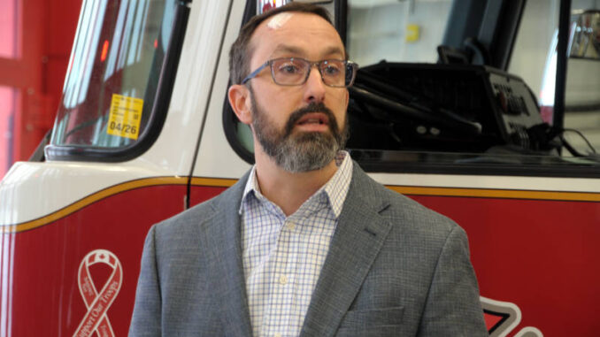 MPP Nolan Quinn speaks during a funding announcement at the Cornwall fire station on Tollgate Road on Monday, Jan. 5, 2026. (Newswatch Group/Bill Kingston)
