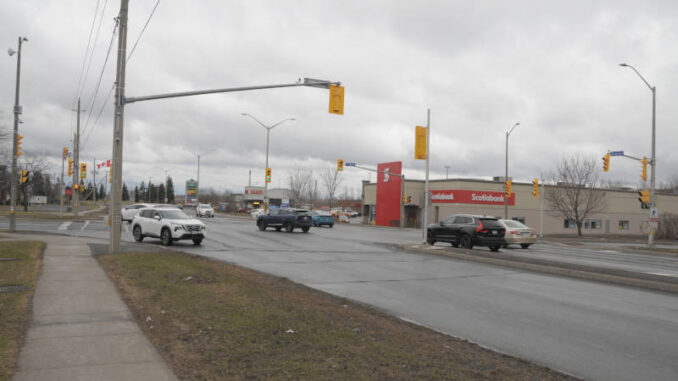 Traffic moves through the intersection of Brookdale Avenue and Ninth Street West in Cornwall, Ont. on Sunday, April 5, 2026. (Newswatch Group/Bill Kingston)