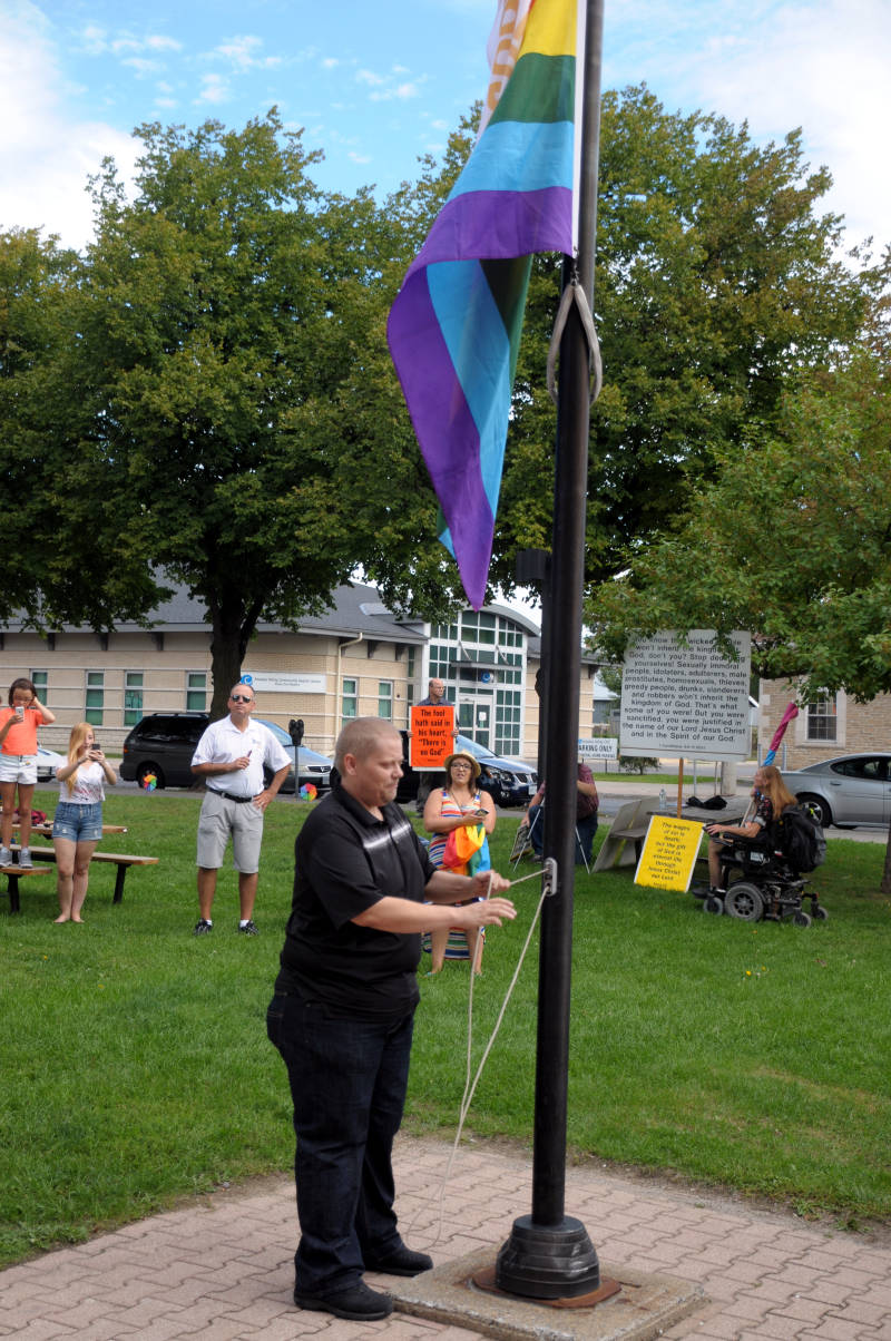 Diversity Cornwall March Sep1016 23 Edited Paul Leger raises the Gay Pride flag during a ceremony at the justice building. Scenes from Diversity Day on Saturday, Sep. 10, 2016 in Cornwall, Ont. (Newswatch Group/Bill Kingston) Related ArticlesDiversity Cornwall fundraising as it struggles with demand'Here is safe and it's home': Cornwall Pride at 10It's Franco-Ontarian Day, Cornwall students to…