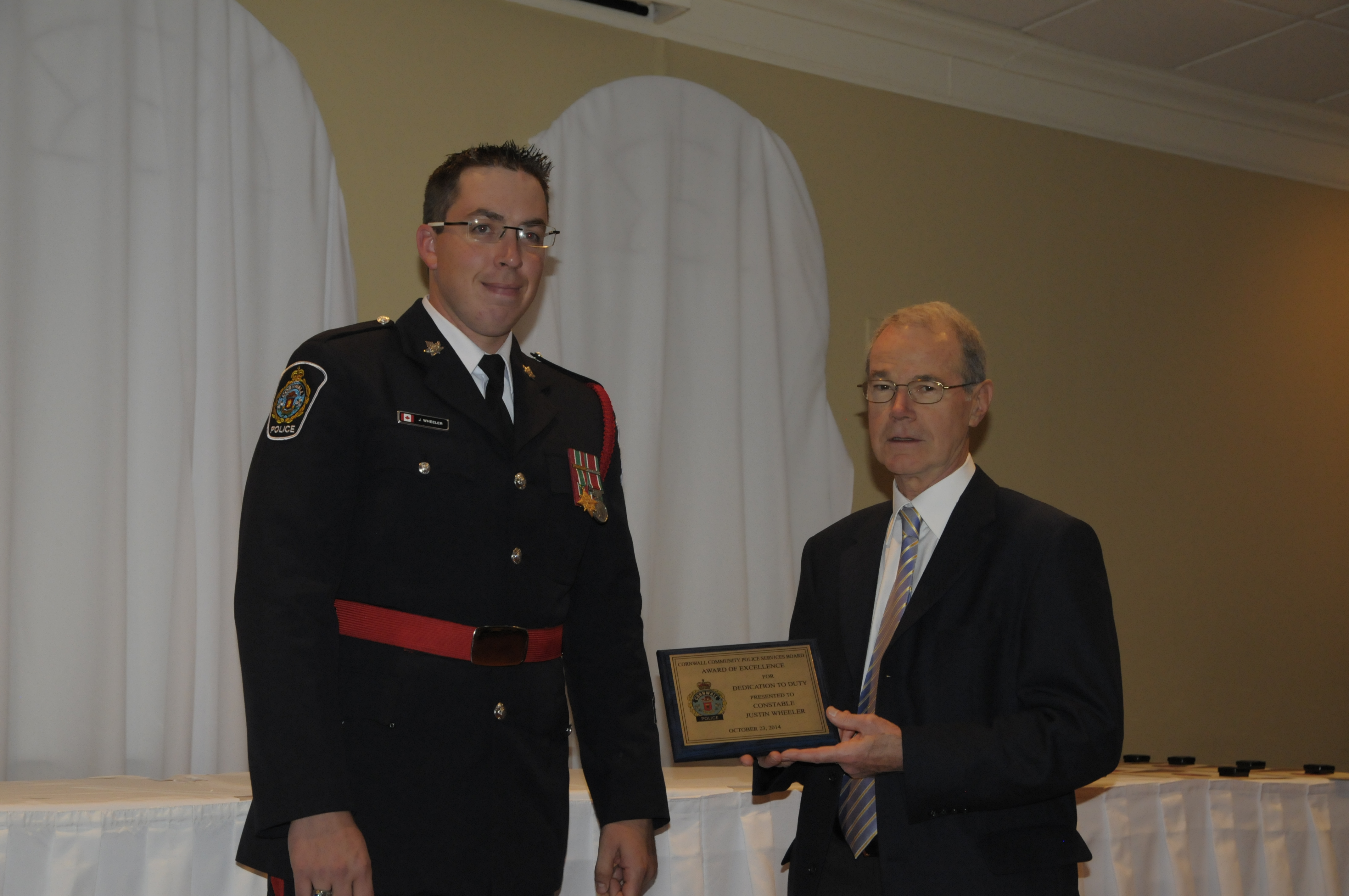 PoliceAwards-Oct2314-09 Const. Justin Wheeler is presented with the board award of excellence for dedication. (Cornwall Newswatch)