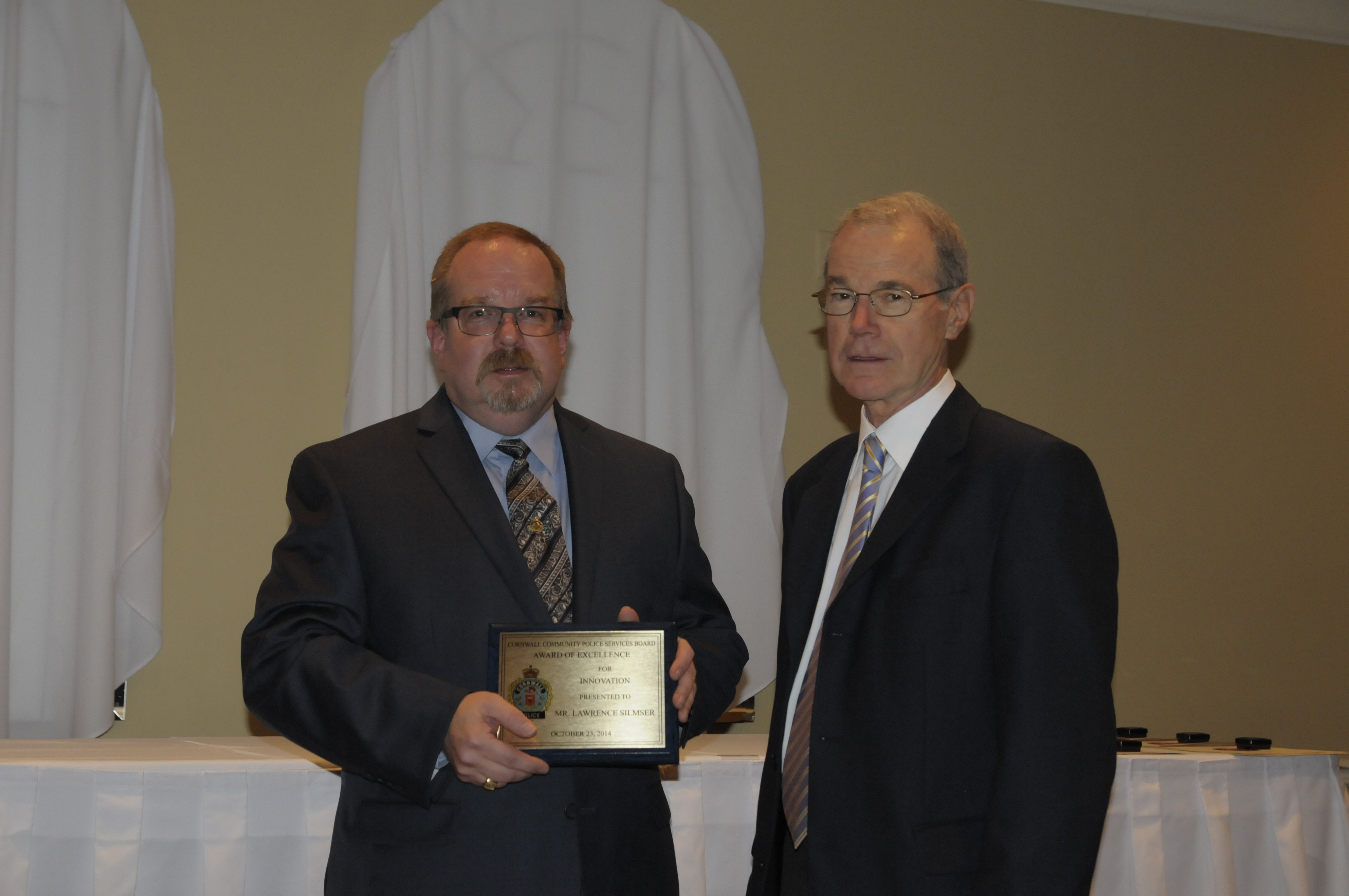 PoliceAwards-Oct2314-11 Lawrence Silmser (left) receives the board award of excellence for innovation. (Cornwall Newswatch)
