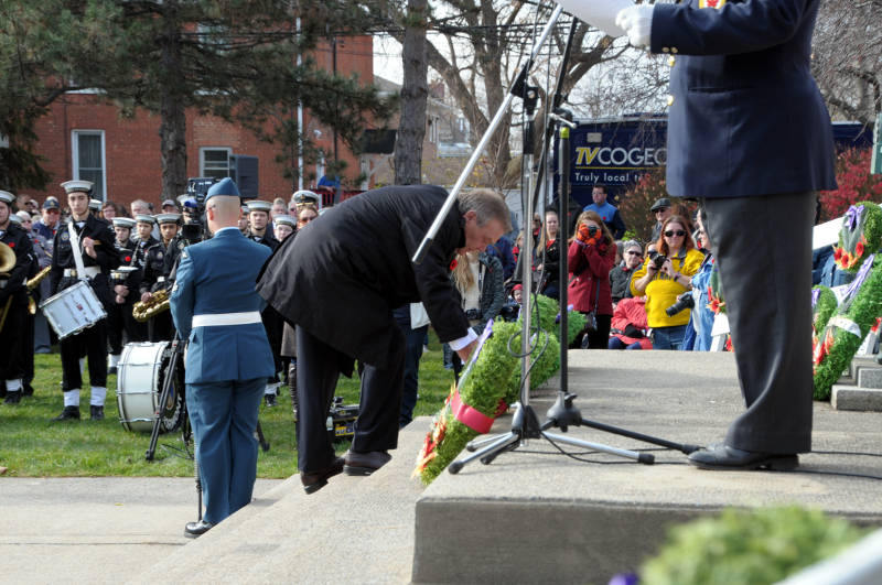 Cornwall Mayor Leslie O’Shaughnessy layd a wreath at the foot of the cenotaph. Scenes from the Remembrance Day ceremony in Cornwall, Ont. on Nov. 11, 2015. (Newswatch Group/Bill Kingston)